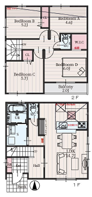 LDK 14.7帖 1室 / 洋室 5.2帖 1室 / 洋室 4.6帖 1室 / 洋室 5.7帖 1室 / 洋室 6.0帖 1室 / |