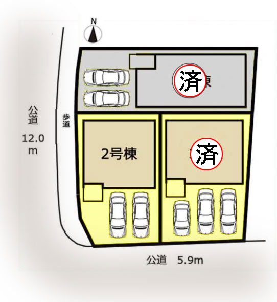 | 接道状況 | 角地 (西側 公道12.0m) (南側 公道5.9m 間口6.5m) | ||