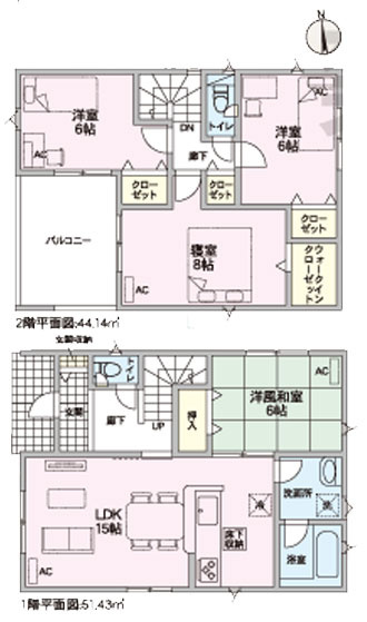 新築住宅 ①2790万(土地134.80㎡建物98.01㎡) ②2790万(土地126.22㎡建物95.57㎡) |