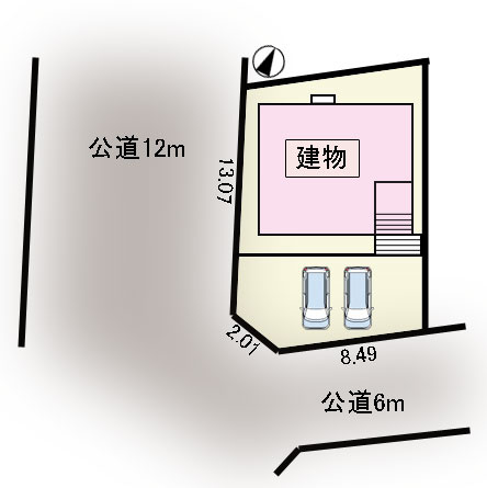 | 接道状況 | 角地 (南側 公道6.0m 間口8.4m) (西側 公道12.0m 間口13.0m) | ||