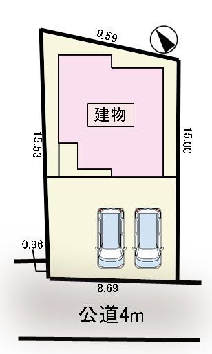 | 接道状況 | 一方 (南西側 公道4.0m 間口8.6m) | ||