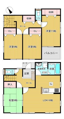 LDK 16.0帖 1室 / 和室 6.0帖 1室 / 洋室 6.0帖 2室 / 洋室 7.5帖 1室 / |