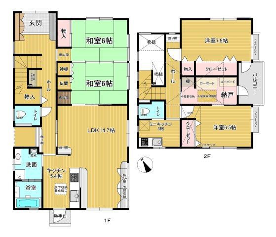 LD 14.7帖 1室 / K 1室 / 和室 6.0帖 2室 / 洋室 7.5帖 1室 / 洋室 6.5帖 1室 / K 3.0帖 1室 / |