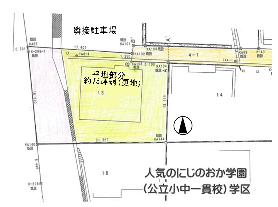 | 備考 | 前面道路が一部区間狭く、北西側擁壁の最も高いところが崖条例にかかる可能性があります。 | ||