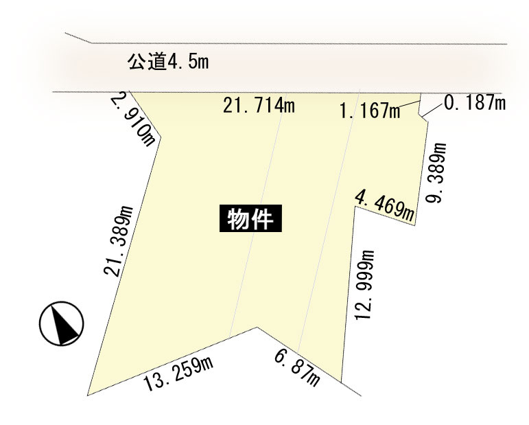 | 接道状況 | 一方 (北側 公道4.5m 間口21.7m) | ||