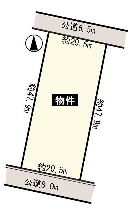 | 接道状況 | 二方 (北側 公道6.5m 間口20.5m) (南側 公道8.0m 間口20.5m) | ||