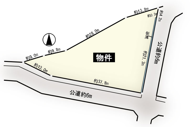 | 接道状況 | 角地 (東側 公道6.0m 間口35.5m) (南側 公道6.0m 間口50.8m) | ||