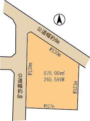 | 接道状況 | 角地 (西側 公道6.0m 間口39.0m) (北東側 公道6.0m 間口30.0m) | ||