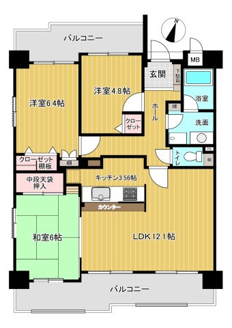 LD 12.1帖 1室 / K 3.5帖 1室 / 和室 6.0帖 1室 / 洋室 6.4帖 1室 / 洋室 4.8帖 1室 / |